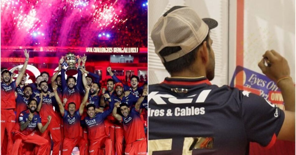 The Royal Challengers Bangalore clinched their first IPL title in the 18th edition of the league. Alongside captain Virat Kohli, wicketkeeper-batter Jitesh Sharma played a crucial role in the victory. In a post on Instagram after the win, Jitesh shared a manifestation he had written in the dressing room back in March. The note described holding the trophy with Virat on his left and Dinesh Karthik on his right, hitting a six in the final when the team needed 6 runs in 2 balls. This dream became a reality as RCB lifted the trophy, with Jitesh fulfilling his vision from months earlier. Although he didn’t end the match with a six, Jitesh’s quickfire 24 off 10 balls contributed to RCB’s total of 190/9, which they successfully defended against Punjab Kings. While Kohli anchored the innings with 43 runs, it was Krunal Pandya and Bhuvneshwar Kumar who played crucial roles in securing the win. The victory was a culmination of years of hard work and determination, as expressed by both Kohli and Jitesh in their respective Instagram posts.