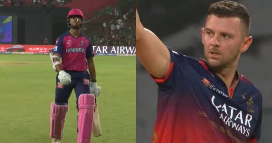 The Rajasthan Royals faced off against Royal Challengers Bengaluru in a thrilling match at the M Chinnaswamy Stadium in Bengaluru. The highlight of the match was the intense contest between Josh Hazlewood and Yashasvi Jaiswal. Jaiswal made a fiery start to the chase, smashing boundaries off Hazlewood’s deliveries. However, Hazlewood eventually got the better of Jaiswal, dismissing him just one run short of his half-century. In response, Hazlewood gave Jaiswal a send-off, leading to a heated exchange between the two players. The umpire had to intervene and warn RCB captain Rajat Patidar.