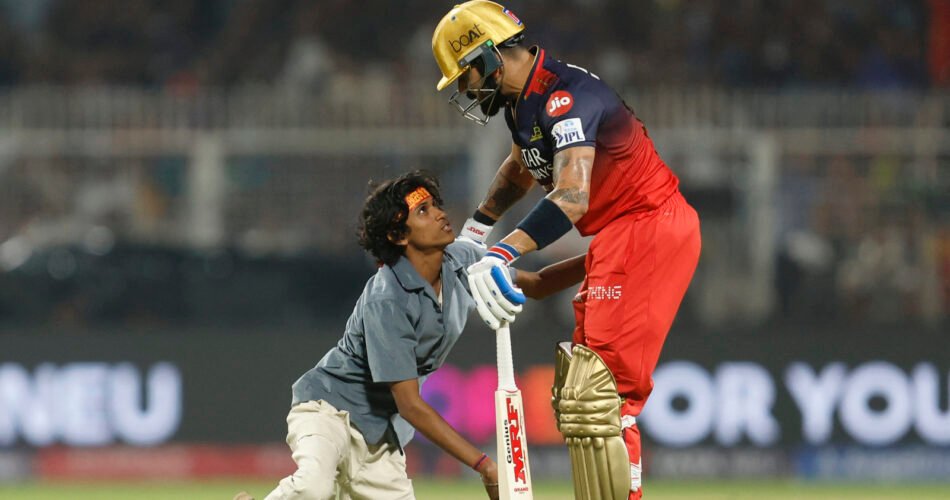 Virat Kohli stole the show at the IPL 2025 opener as he led Royal Challengers Bengaluru (RCB) to victory against Kolkata Knight Riders (KKR) with an unbeaten knock of 59 runs. During the match, a fan breached security to meet Kohli on the field, touching his feet before being removed by officials. Despite the disruption, Kohli remained composed, hugging the fan before he was escorted away.