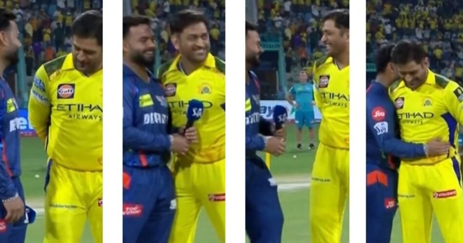 During the IPL 2025 fixture between CSK and LSG in Lucknow, MS Dhoni and Rishabh Pant shared a heartwarming moment during the toss. The duo, described as master and student, playfully interacted with each other, with Dhoni bumping his shoulder against Pant’s and attempting to push him, reminiscent of school friends. Pant responded with a smile and a hug for the CSK skipper. Dhoni won the toss and chose to bowl first, citing the presence of dew and the wicket conditions. Both captains expressed their strategies and team changes for the match. Dhoni took over the captaincy due to Ruturaj Gaikwad’s injury, but their previous match against KKR resulted in a loss for CSK. The encounter between Dhoni and Pant was captured in a video, showcasing their camaraderie on the field. This wholesome ‘Guru-Shishya’ moment added a touch of warmth to the competitive cricket setting, highlighting the bond between the two players.