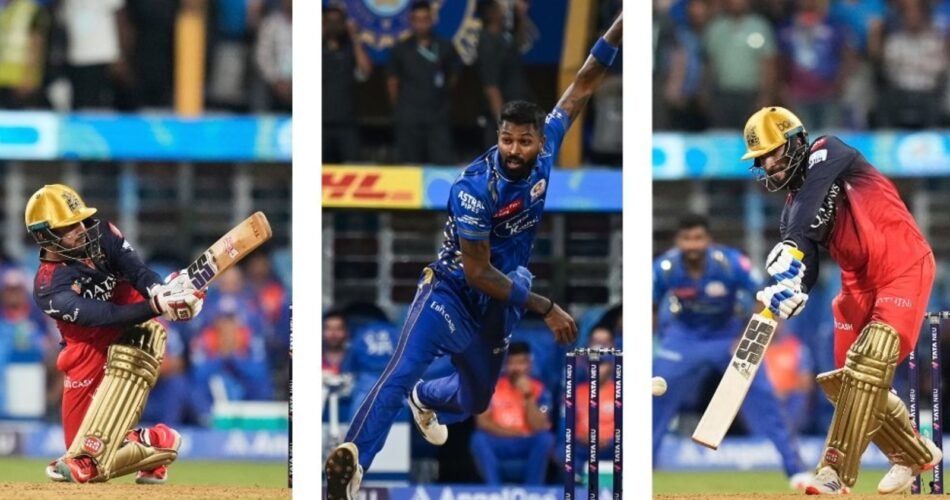 Rajat Patidar and Jitesh Sharma showcased a display of power-hitting for Royal Challengers Bangalore as they aimed for a 200-plus total against Mumbai Indians at the Wankhede Stadium. Despite an early setback with opener Phil Salt’s dismissal, Virat Kohli led the charge with a blistering knock, supported by Devdutt Padikkal. Kohli’s aggressive innings of 67 runs off 42 balls included eight fours and two sixes.