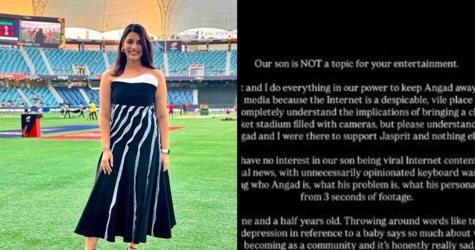 Sanjana Ganesan, wife of Indian cricketer Jasprit Bumrah, recently took to Instagram to address the issue of trolls mocking her 1.5-year-old son, Angad, over his facial expression during a Mumbai Indians match. In her heartfelt post, she emphasized that Angad is not meant to be entertainment for social media users and urged for more kindness and sensitivity online. Photos of Sanjana and Angad at the stadium had circulated, sparking insensitive comments about the child’s demeanor. However, the majority of the response has been in support of Sanjana’s stance on protecting her son’s privacy. Many praised her courage in standing up against online scrutiny and highlighted the importance of safeguarding children from unnecessary judgment. Sanjana and Jasprit Bumrah, who got married in 2021, celebrated their fourth anniversary in March and welcomed Angad in September 2023. The couple’s decision to keep their son away from the public eye has garnered widespread admiration and calls for respect for their family’s privacy.