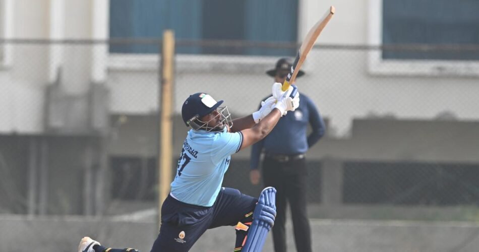 Mumbai batsman Sarfaraz Khan showcased his hitting prowess with a stunning innings of 73 runs off just 22 balls against Rajasthan in a Syed Mushtaq Ali T20 Super League Group B match. This impressive knock came just before the IPL auction, where he is hoping to attract the attention of franchises. Sarfaraz’s innings included six fours and seven sixes, highlighting his ability to score quickly and decisively.
