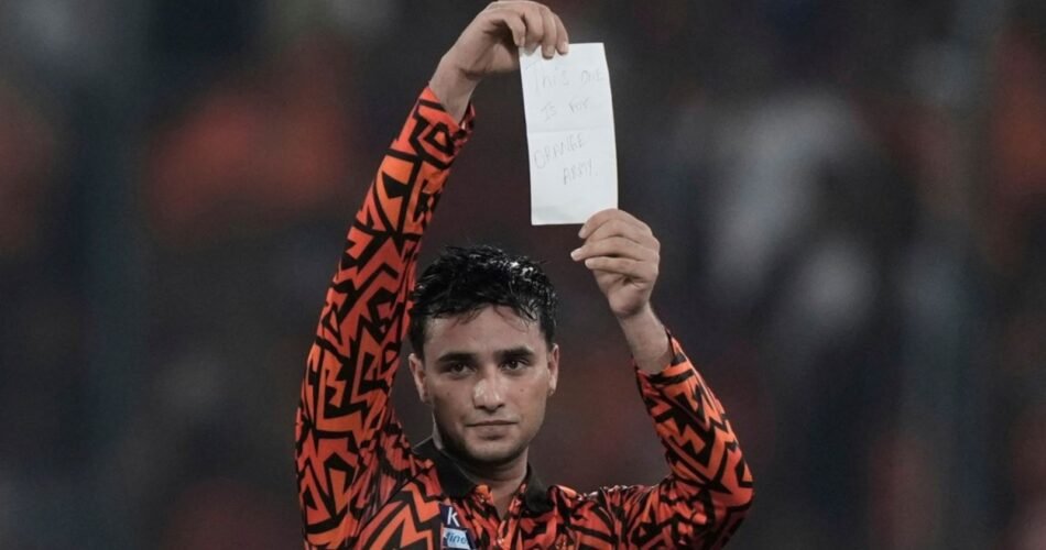 Abhishek Sharma of SunRisers Hyderabad scored his maiden IPL century in a spectacular fashion against Punjab Kings. He reached the milestone in just 40 balls, becoming the sixth fastest century scorer in IPL history. After completing his century, Sharma displayed a white paper with the message “This one is for the Orange Army,” referring to the SRH fanbase. Punjab Kings captain Shreyas Iyer was intrigued by the message and approached Sharma to read it.
